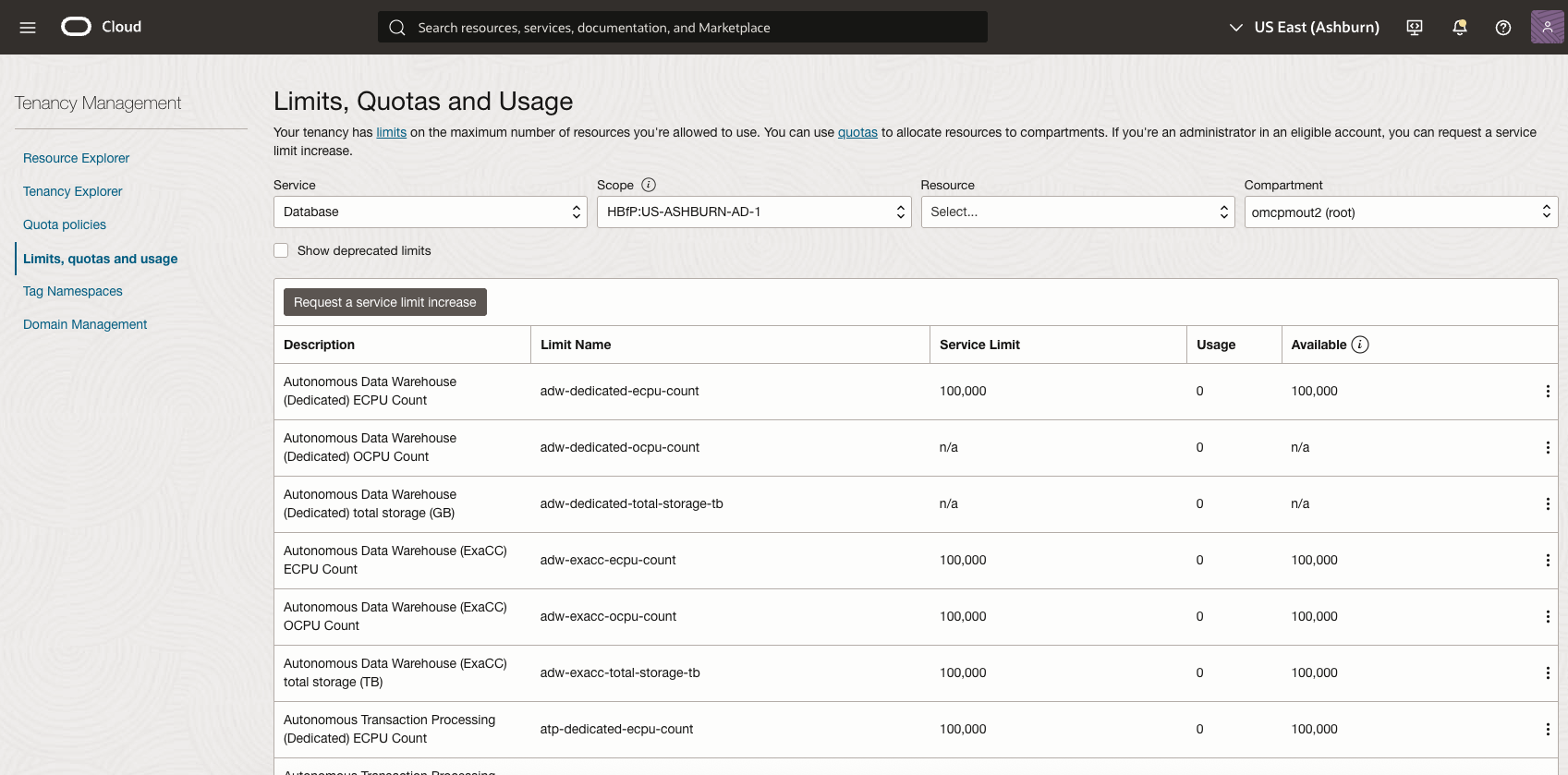 View Oracle Database@Google Cloud Service Limits in Google Cloud Portal