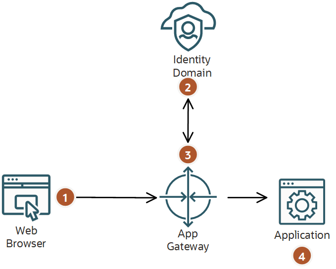 Le diagramme suivant présente un exemple d'interaction entre la passerelle d'application et IAM lorsque le navigateur de l'utilisateur envoie une demande HTTP à une ressource d'application via la passerelle d'application.