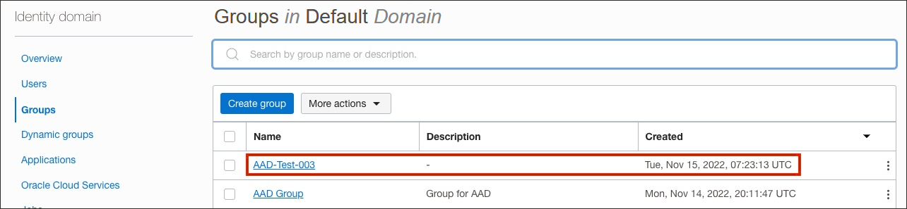 Dans OCI IAM, vous pouvez désormais voir les utilisateurs et les groupes provisionnés à partir de l'ID Entra.
