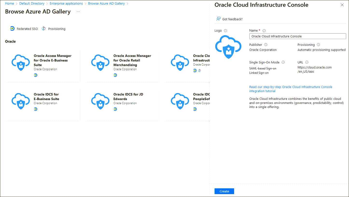 Configurez l'ID Entra en tant que banque d'identités faisant autorité pour gérer les identités dans OCI IAM à l'aide d'un modèle d'application de la galerie d'ID Entra.